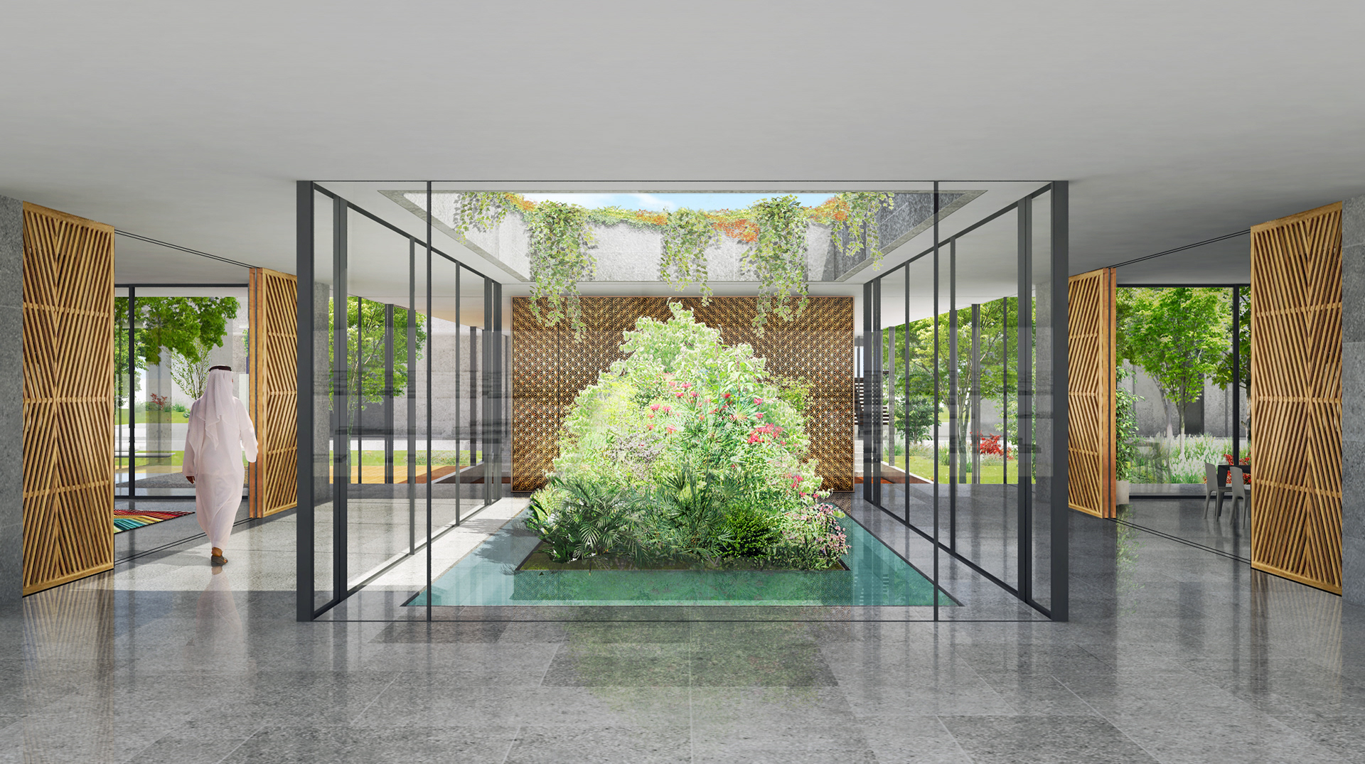 The flexibility of the architectural spaces allows for mediation of natural light and regulation of interior temperatures, an essential contextual aspect of the desert climate.